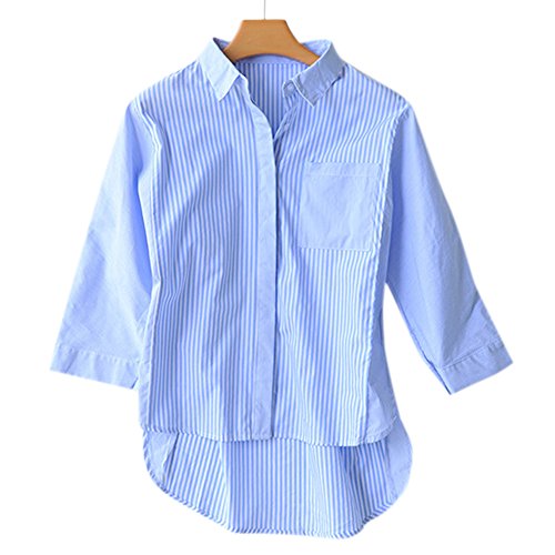-. Title : トップス シャツ ブラウス 半袖 ボタン ストライプ 通勤着 カジュアル 綿 ゆるかわ レディース