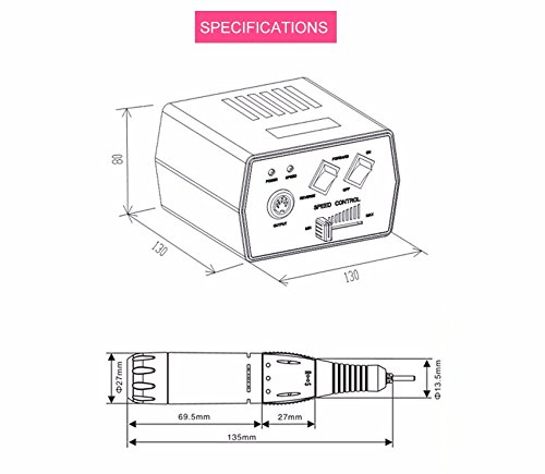 -. Feature : Easy to use speed control / Automatic safety overload protection system / Light weight pen design for comfortable grip and easy to use / Include 6 standard bits/filing heads / For pedicure and manicure,suitable for professional use, nail salon or home use