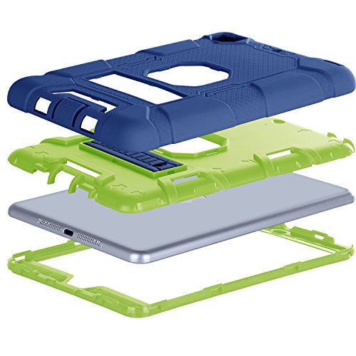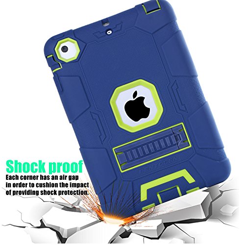 iPad Mini Case, iPad Mini 2 Case, iPad Mini 3 Case, BENTOBEN 3 In 1 High Impact Resistant Kickstand Heavy Duty Rugged Shockproof Protective Case WITHOUT Screen Protector for iPad Mini 1/2/3,Blue/Green