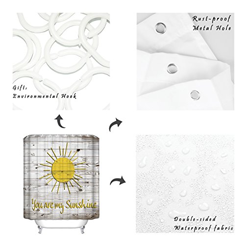 SUN-Shine Custom Waterproof Bathroom You Are My Sunshine Print Decoration Polyester Fabric Mildew Shower Curtain With Hooks 66x72IN