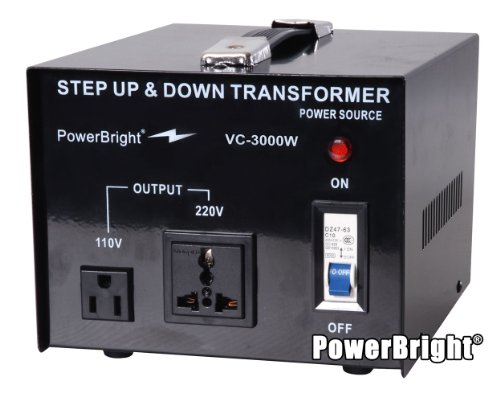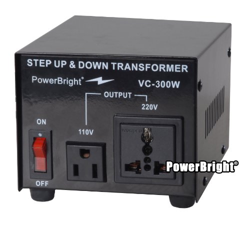 Power Bright series of step up/down voltage transformers offers you a safe, reliable, affordable & convenient solution to converting voltages from 110-120 volt up to 220-240 volt or from 220-240 volt down to 110-120 volt for both home use & industrial applications. The VC100W is rated at 100 watts maximum. It features a heavy-duty cord with a standard US 3-prong plug plus a free American to German outlet plug adapter. There are a total of two outputs on the front panel. Two are grounded outputs, one designated for 120 volts with a US standard outlet and 220 volt only universal outlet. For safety, it's recommended by the manufacturer that the voltage transformer's maximum power should be equal or greater than the power rating of your appliance multiplied by 1.5. For example, if you have an appliance rated at 100 watts, you will need to pick a transformer with a maximum power of 150 watts or greater.Feature