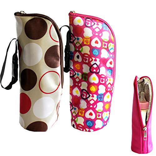 -. Feature : Material: High-grade flower cloth + environmental protection insulation aluminum. / 2 Pack, the dimension is 3.1x3.1x9.5inch(8X8X24CM), it can hold a 350ML milk bottle. / Hand strap, convenient strap with clip for hanging on bag or by or stroller. / Insulation is silver inside and keeps a freshly made bottle warm for well three or four hours. / Easy to clean, the fabric can be a bit tricky to clean if you have any milk leaks as it can't be turned inside out very easily, though a quick wipe with a damp sponge seems to work OK.