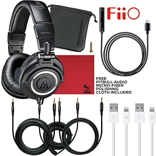 -. Title : Audio-Technica ATH-M50x Headphones Black With iPhone Fiio i1 DAC Headphone Amp, MonoP.R.Ice 6’ MFI Lighting Cables and Polishing Cloth