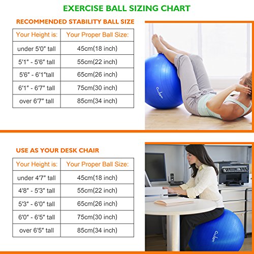 Coolwoo Exercise Ball with Pump for Yoga Pilates Fitness Balance & Stability, Anti Burst Multi Sizes