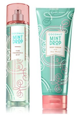 -. Binding : Misc. -. Brand : Bath & Body Works -. EAN : 0672823951366 -. Feature : Coconut mint drop fine fragrance mist & ultra shea body cream 8 Oz. / An icy-fresh blend of white coconut, iced peppermint and winter musk. / Great coverage while conditioning aloe mist nourishes skin for the lightest, most refreshing way to fragrance. / With soothing Aloe Butter, pampering Cocoa Butter and more Shea than ever before. -. IsAdultProduct : 0 -. Label : Bath and Body Works -. Manufacturer : Bath and Body Works -. MPN : 0672823951366 -. PartNumber : 0672823951366 -. ProductGroup : Beauty -. ProductTypeName : BEAUTY -. Publisher : Bath and Body Works -. Studio : Bath and Body Works -. Title : Bath and Body Works Coconut Mint Drop Fine Fragrance Mist & Ultra Shea Body Cream 8 Oz. -. UPC : 672823951366