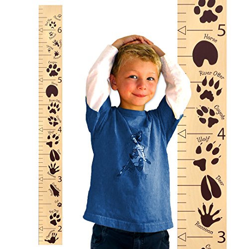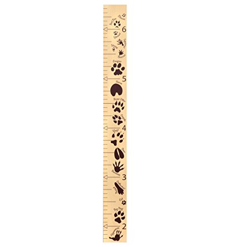 Growth Chart Art | Hanging Wooden Height Growth Chart to Measure Baby, Child, Grandchild - Animal Tracks Ruler with Brown Paw Prints and...