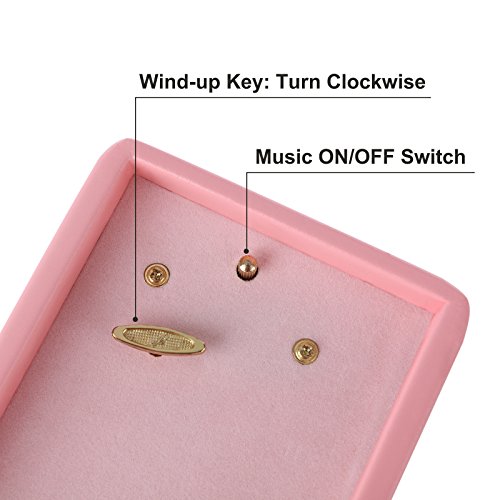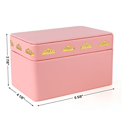 UNIQUE SONGMICS DESIGN: Decorated with golden crown, built-in mirror, baby pink faux leather exterior & soft velvet lining, the fancy music box realize the princess dream of every girl