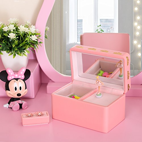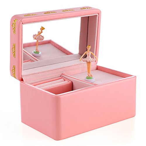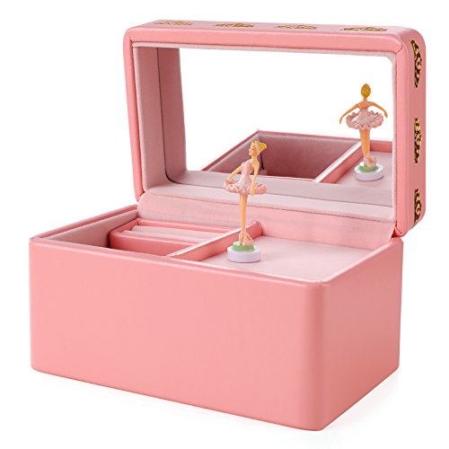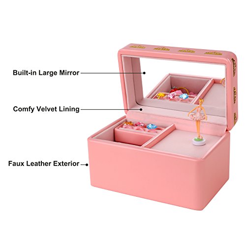 SONGMICS Girls Musical Jewelry Box Ballerina Music Box Pink Faux Leather, Swan Lake Tune UJMC11P