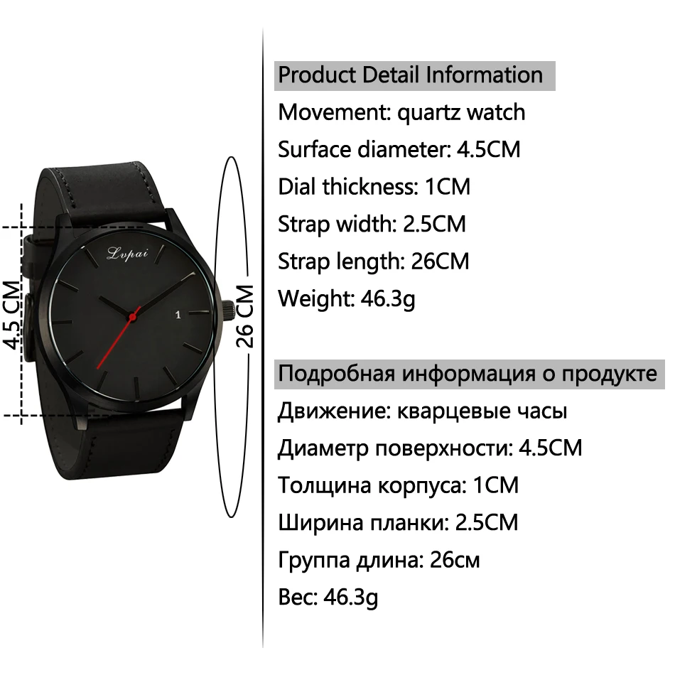 Item Type:Quartz Wristwatches Band Length:26 cm Case Shape:Round Band Material Type:Leather Boxes & Cases Material:Paper Style:Fashion & Casual Model Number:LP031 Feature:Complete Calendar Clasp Type:Buckle Case Thickness:10 mm Band Width:25 mm Case Material:Alloy Movement:Quartz Dial Diameter:45 mm Water Resistance Depth:No waterproof Gender:Men Brand Name:LVPAI Dial Window Material Type:Glass 1. Style:Fashion Casual Sport Luxury Dress Business Vintage Cartoon 2. Color:Black Brown Coffee White 3. Watch:Wristwatch Clock 4. Material:Alloy Leather 5. Movement:Quartz Electronic 6.Hot Search Word:Men Dress Bracelet Fashion Watch Men Sport Watch 7. Gender:Female Men Daughter Frail 8.Top Search Words:Lvpai Gold Watch Watches Jewelry 9.Top Search Words:Hot Sale Men Cheap Luxury Watches Watch 100pcs 10.Top Search Words:Female Wristwatch Gift Dress Watches New Arrive Hot sale