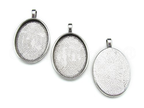 20 CleverDelights Oval Pendant Trays - Antique Silver Color - 22 x 30 mm - Pendant Blanks Cameo Bezel Settings - Custom Jewelry Making 22x30mm