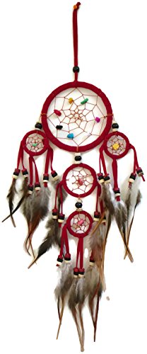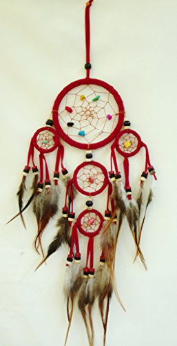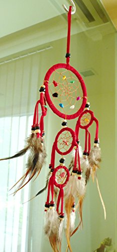 Moose546 Red Dream Catchers Hanging Ornaments with Feathers and Beads 3.5" Diameter and 15" Long C-046