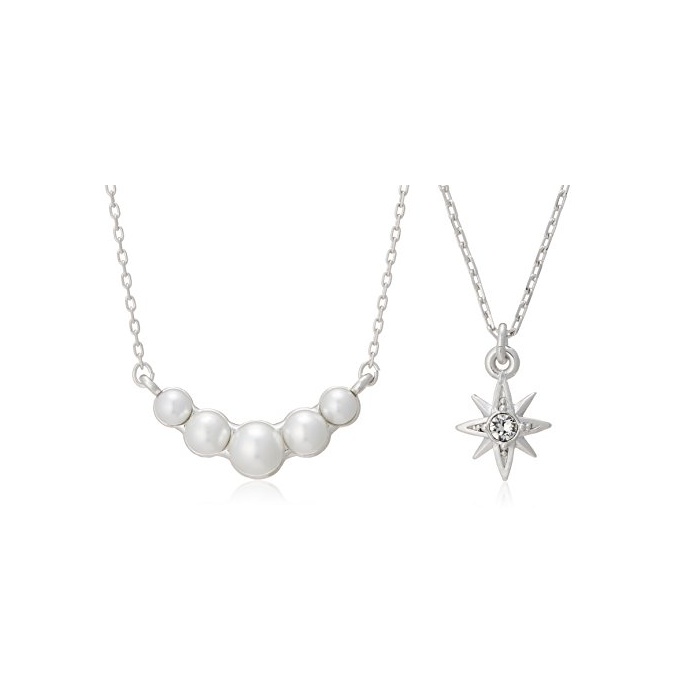 [플러스 밴 돔] Plus Vendome 【2개 세트】크리스탈 스타 넥크리스 + 펄 넥크리스 PVNP571638UW