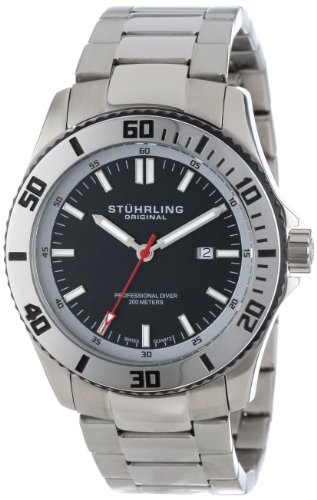 -. Binding : Watch -. Brand : Stuhrling Original -. Color : Black -. Department : mens -. EAN : 0847988029681 -. Feature : Polished and brushed finish stainless steel triple row link bracelet with fold over push button clasp / Brushed finish stainless steel round shape case with unidirectional ratcheting bezel and protective Krysterna crystal on front / Black matte finish dial with applied markers and red seconds hand / Date window at three o'clock position and silver outer minutes track / Water resistant to 660 feet (200 M): suitable for recreational scuba diving -. IsAdultProduct : 0 -. Label : Stuhrling Original -. Manufacturer : Stuhrling Original -. Model : 714.02 -. MPN : 714.02 -. PackageQuantity : 1 -. PartNumber : 714.02 -. ProductGroup : Watch -. ProductTypeName : WATCH -. Publisher : Stuhrling Original -. ReleaseDate : 2013-06-12 -. Studio : Stuhrling Original -. Title : Stuhrling Original Men's 714.02 Aquadiver Regatta Bermuda Swiss Quartz Professional Diver Black Dial Stainless Steel Bracelet Watch -. UPC : 847988029681