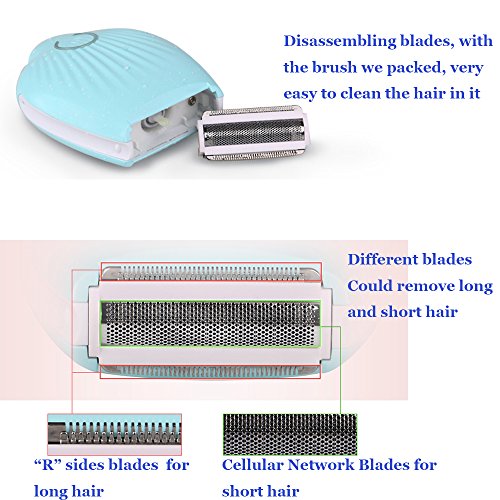 - 1. Eliminate all body unwanted hair womens shaver- 3 in 1 different blade design, could use this electric lady shaver to remove all body hairs from legs, arms, underarms, face, etc