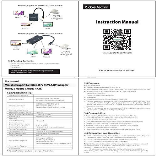 CableDeconn Gold Plated Mini Displayport (Thunderbolt Port Compatible) to Hdmi/dvi/vga 3-in-1 Adapter for Apple Macbook Air Pro Hdmi Port Supporting 4kx2k Resolution White
