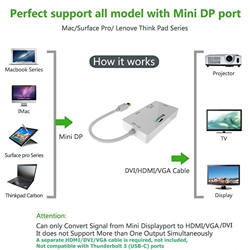 Mini DP Displayport 1.2 Thunderbolt to DVI VGA HDMI 4K*2K Adapter 3 in1 for Apple MacBook Air Pro iMac Three output ports, you can choose one of them to use at same time.Note: Only supports 1 display output at a time