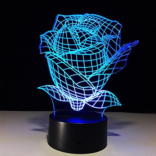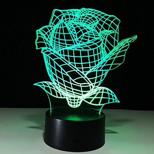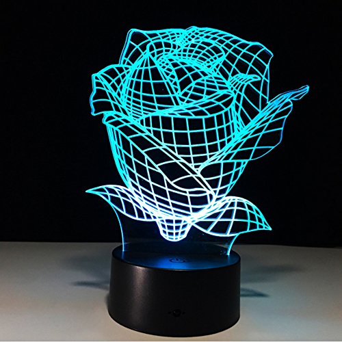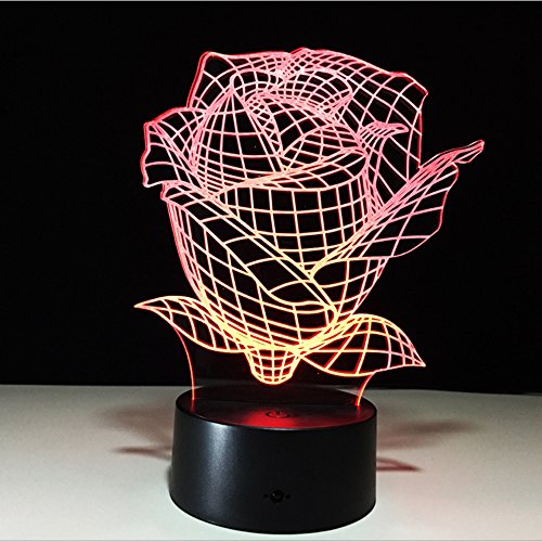 3D illusion Led night light with optical vision of a beautiful rose. Though 3D lighting effect, the light body is only an acrylic flat.