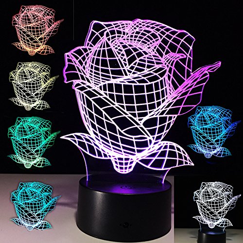 3D Rose Illusion Lamp Optical Color Changing Led Desk Night Light Kids Bedroom Nursery Decor