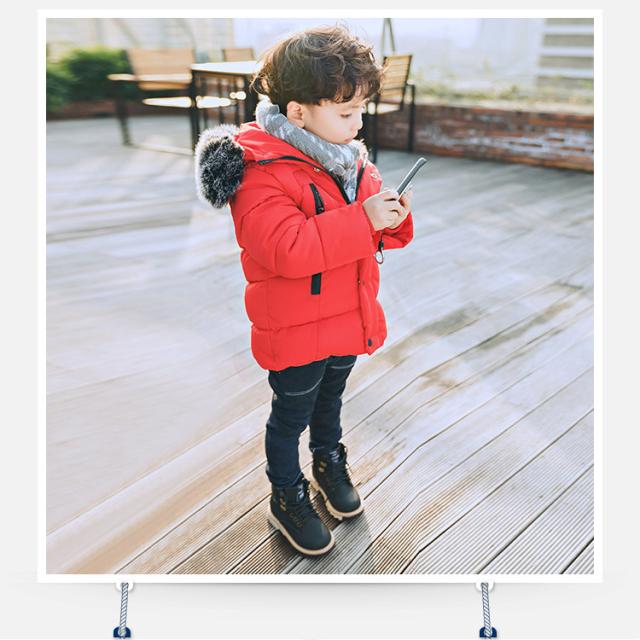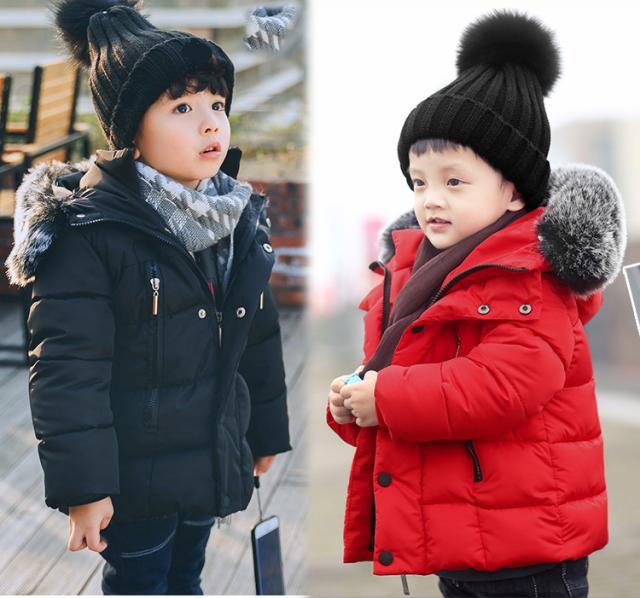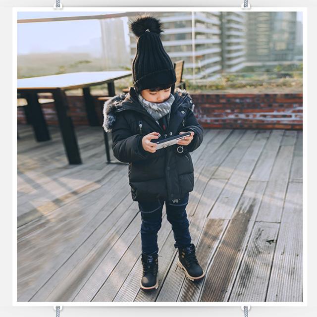80-130cm 黒色コート 防寒 ファー付き 男女兼用 子供服 ダウンジャケット 中綿コート キッズ/ジュニア アウター 軽量 冬 通園通学