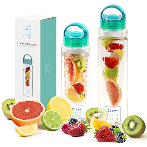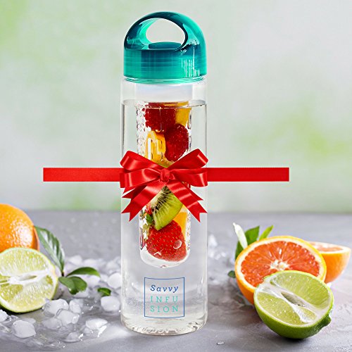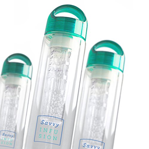"We really like these infusion water bottles so much! The infusion basket is longer so it goes farther down in the water and we love the top which has a handle making it easier to take with you. These are really the best we have had!" J.D. Ball Your search for the perfect infuser water bottle is finally over. You now have the power to create your own unique infused thirst-quenching beverage. You'll be inspired to drink more water...the easiest way to stay slim, healthy, and energized. A must have for the gym, sports, yoga, hiking, camping, traveling. And think of all the money you'll save. No more buying expensive bottled water, sports drinks, soda or "vitamin" flavored water, which are full of refined sugar and empty calories. So what separates Savvy Infusion from the competition? It's simple really. Savvy Infusion WILL NOT leak. Our unique handled twist-cap style infuser drinking cup ensures a completely spill and leak proof drinking experience -100% BPA Free -Highest quality impact-resistant Tritan plastic. -Chic on-the-go carry handle. -Superior design holds the perfect proportion of fruit and water. -24 ounce size fits perfectly in your car cup holder. - Includes FREE Bonus EBook with delicious recipes. It's because of all this that we're able to make a guarantee unlike any other guarantee you've ever seen. We call it our "100% Absolutely Thrilled or Your Money Back" No Hassle-Guarantee. So order your Savvy Infusion Water Bottle now. Consider getting two...1 for you and 1 for a friend. 0 |