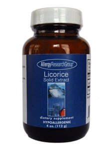 Studio : Allergy Research Group Publisher : Allergy Research Group Binding : Health and Beauty Product Description INGREDIENTS: SERVING SIZE: 1/2 Teaspoon (Approx. 3 grams) SERVINGS PER CONTAINER: 37 AMOUNT PER SERVING: Licorice (Root) Solid Extract 4:1 1.5 grams (supplying approx. 150 mg Glycyrrhizic acid) Certified kosher vegetable glycerin. Free of all common allergens (antigens), and do not contain preservatives, diluents, or artificial additives. SUGGESTED USAGE: Take 1/4 to 1/2 teaspoon two or three times daily, or as directed by a healthcare practitioner. WARNINGS: None 0