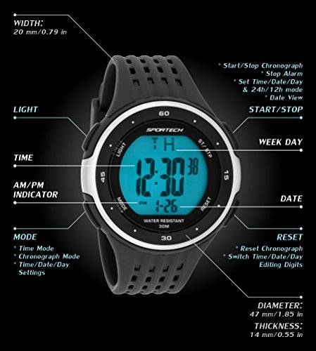 -. Title : Men's Watches by Sportech - Black And Silver Digital Water Resistant Sport Watch - Make Every Second Count - SP12301
