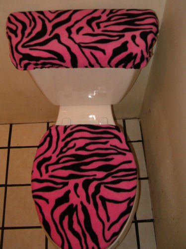 -. Title : HOT PINK AND BLACK ZEBRA STRIPES FLEECE TOILET SEAT COVER SET