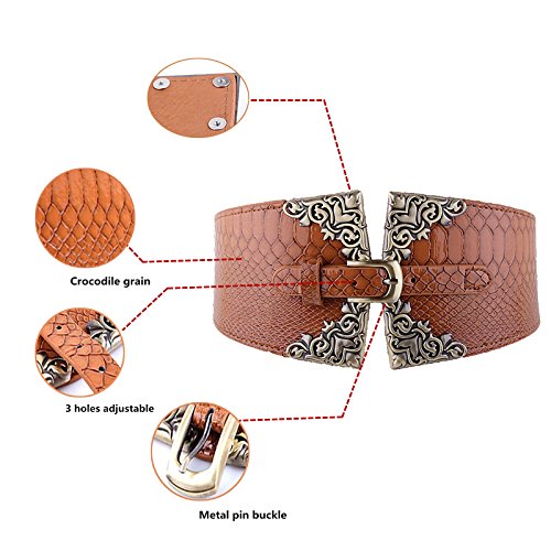 Binding : Apparel Product Description Excellent workmanship and fashion design, Crocodile skin pattern, faux leather alloy material Pin-buckle front and elastic band makes it easier to wear on Available for any occasions as the special decorative accessory on your dress Fashion wide stretch waist belt, it's necessary for each lady. The belt will be a pretty decor for your clothing, and make you slim There might be slight color deviation due to different displays. Notice: The measurement may have 1-3cm (0.39-1.18inch) inaccurate errors.