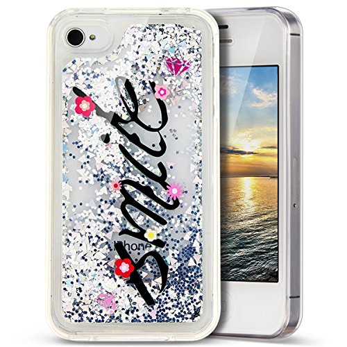 -. Title : iPhone 4S Case, iPhone 4 / 4S Liquid Glitter Case,Phezen 3D Creative Design Shiny Quicksand Flowing Bling Glitter Sparkle Heart Clear Hard Case for iPhone 4S - Silver Diamond