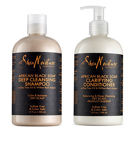 -. Feature : 1x Shea Moisture African Black Soap Deep Cleansing Shampoo 13oz. / 1x Shea Moisture African Black Soap Balancing Conditioner 13oz. / Dry, Itchy Scalp / Sulfate Free / With tea tree & willow bark extract
