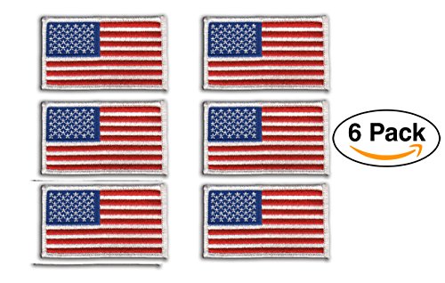 6 Pack - American Flag Embroidered Patch, white border USA United States of America, US flag Patch, sew on