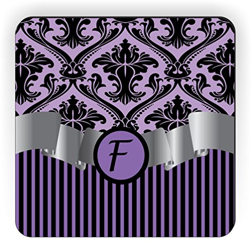 Rikki Knight Letter "F" Initial Purple Damask and Stripes Monogrammed Design Square Fridge Magnet