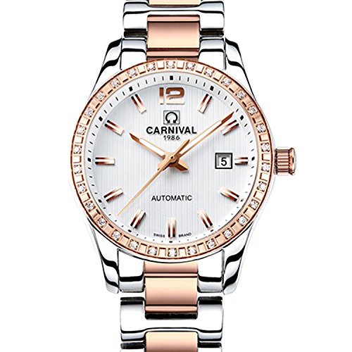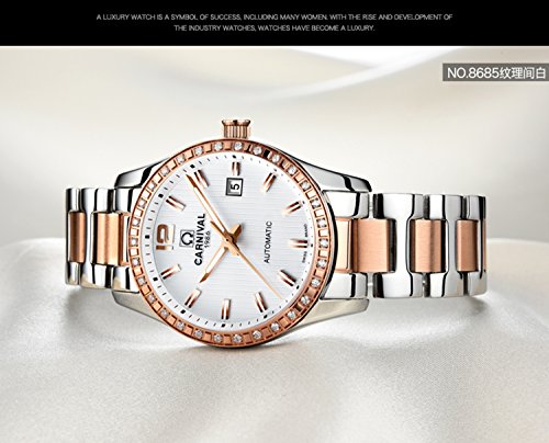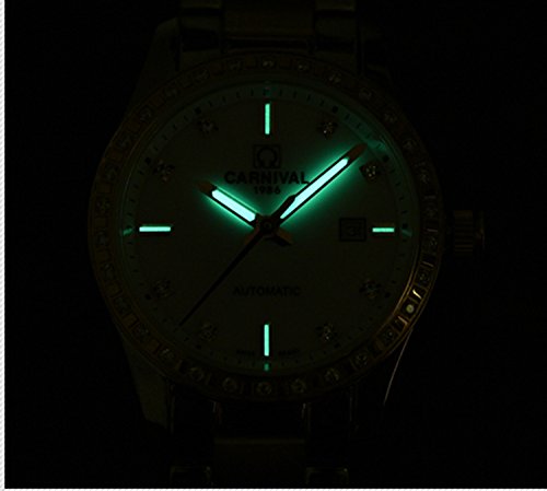 -. Title : Fanmis Rhinestone Automatic Mechanical Full Steel Luminous Waterproof Ladies Watch White