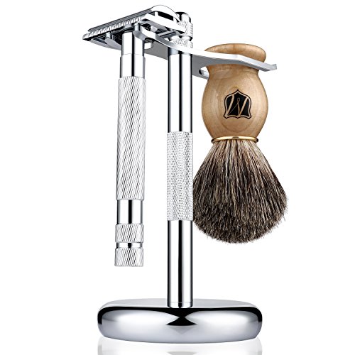 Miusco Men's Shaving Set, Safety Razor, Badger Hair Shaving Brush, Shaving Stand, Chrome