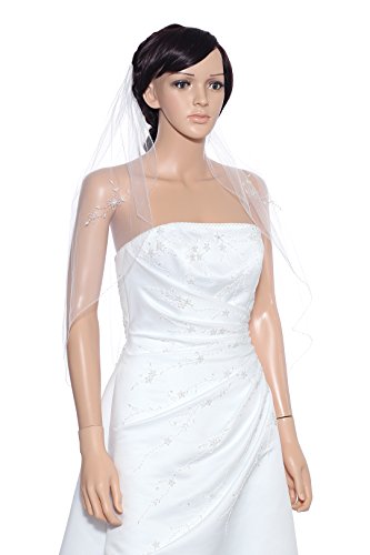 (Venus Jewelry)/Accessories/Scarves/DIRECT FROM USA/1T 1 Tier Crystals Floral Beaded Wedding Veil Fingertip Length 36"