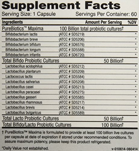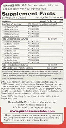 -. Title : Pure Essence Labs PureBiotics Maxima - 15 Probiotic Strains - 100 Billion CTU - 60 Delayed Release Vegetarian Capsules