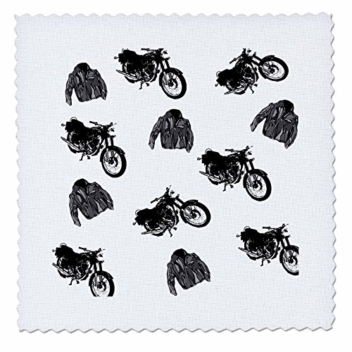 3dRose Print of Motorcycle and Leather Jacket Repeat Pattern - Quilt Square, 10 by 10-Inch (qs_221641_1)