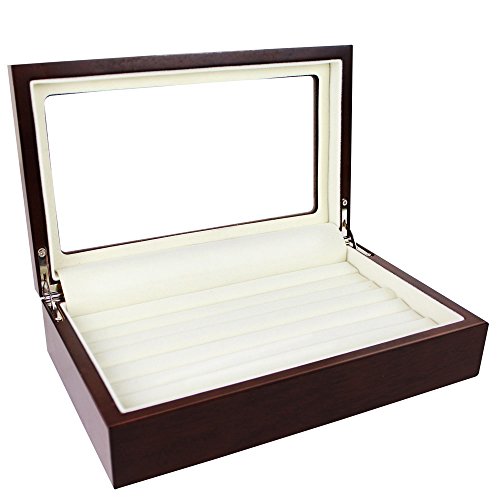 -. Binding : Kitchen -. Brand : Ikee Design -. Color : Brown -. Feature : ideal for storefront windows and trade shows for the professional, casual use, vendor events, and for collectors. It's a convenient set up which makes it easier for busy trade shows etc. / View top glass lid makes it easier to display rings. / There are 7 rows of ring inserts to maximize storing capacity. Holds up well to thin/thick bands, and heavier rings as well. / Lightweight and perfect for traveling which is definitely useful for trade shows or vendor events / The beige felted interior makes a great classy background hue for intricate and simple rings. Measures 9"L x 5 1/2"W x 2 3/8"H -. IsAutographed : 0 -. Label : Ikee Design -. Manufacturer : Ikee Design -. ProductGroup : Home -. ProductTypeName : HOME -. Publisher : Ikee Design -. Studio : Ikee Design -. Title : Ikee Design Wooden Ring Inserts Organizer & Jewelry Accessory Display View Top Box