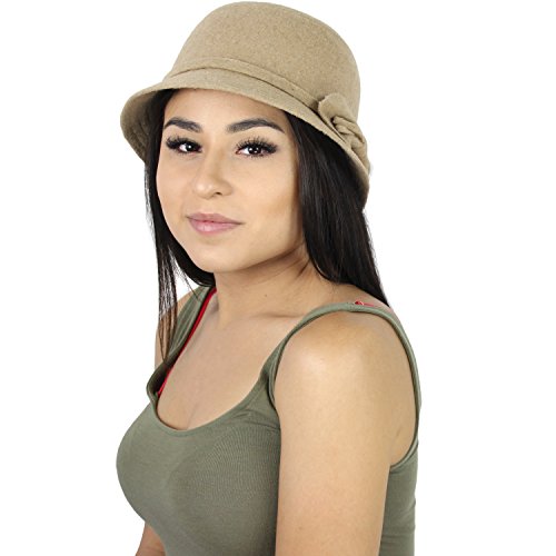 Binding : Apparel Product Description Beautiful vintage inspired cloche hat for women will bring out your inner flapper style. You will love the cinched bow accent. The cloche hat shape features a rounded crown top with a brim measuring 1 inch around. This hat looks fabulous anytime - wear to work, school, when shopping or out on the town. The cotton blend will keep you warm as well as stylish, and is comfortable to wear, as oftentimes wool styled hats can become itchy. Hat measures about 22 inches around the head. Available for a limited time - makes a great gift this season! 0
