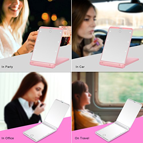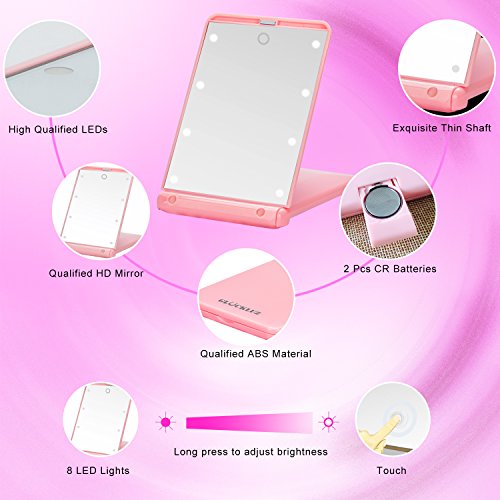 - 1.✔LIGHTED LED MAKEUP MIRROR There are 8 dimmable LED lights that may be useful when it's a dark environment or lights it not sufficient.
