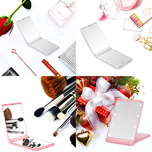 Glückluz Valentine's Day Romantic Gifts LED Lighted Compact Travel Makeup Mirror 3X Magnification 8 LED Lights Adjustable Brightness Portable Folding Cosmetic Ultra-thin Vanity Mirror (White)
