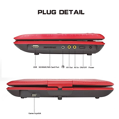 ieGeek Portable DVD Player Kit - 9.5" LED Eye Protection Swivel Screen Portable DVD Player and Same Size Car Headrest Strap Case for Kids in Traval (Red)