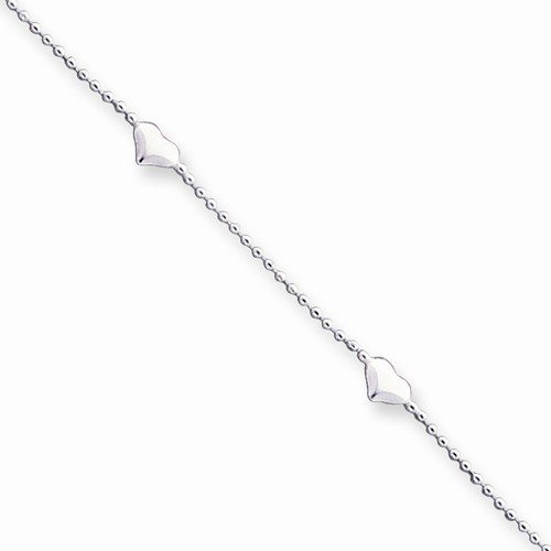Solid 925 Sterling Silver 10inch Polished Puffed Love Heart Anklet Bracelet - with Secure Lobster Lock Clasp 10"