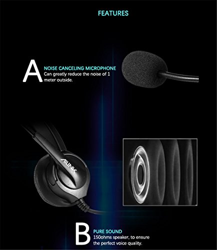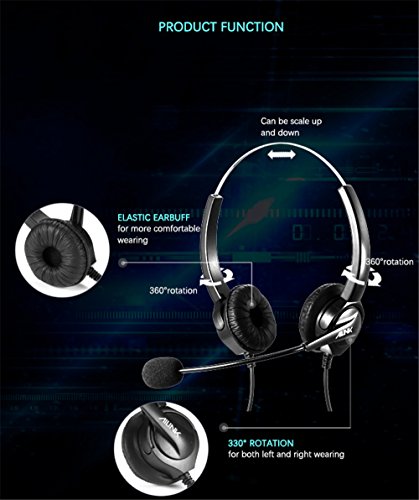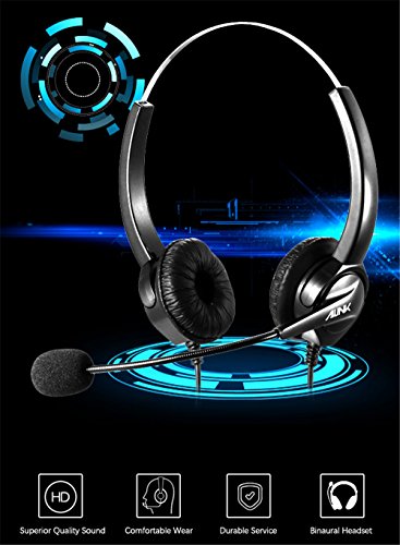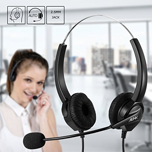 Ailink 2.5mm Dual Ear Call Center Telephone Headphone, 6FT Noise Cancelling Binaural Headset, with Boom-style Mic for Most Cordless Phones