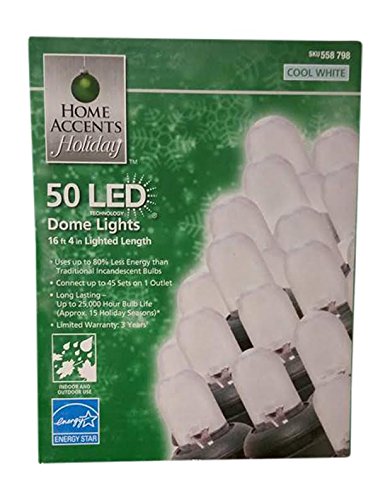 Home Accents Holiday 50-Count LED Cool White Dome Indoor/Outdoor Christmas Lights with 16.33 ft. of lighted length (2 x 50) 100 Total (white)