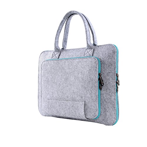 -. Feature : Elegant Eco Felt appearance and fashion simple envelope concept with metal zippers, which can open and close easily; / Protecting your laptop from scratches, dints, scrapes, spills, dirt, which also wear-resistant, shockproof and breathable too; / On the front, there is a smaller compartment, which could hold the adapter, another tablet device, pen, mobile phone, wallet, ID cards, USB cable and keys; / Great for travel and also suitable for your daily life, like school and work, which could be used as documents or books carrier too; / General stain just wipe gently with a wet cloth, it is very easy to clean.
