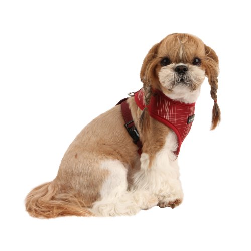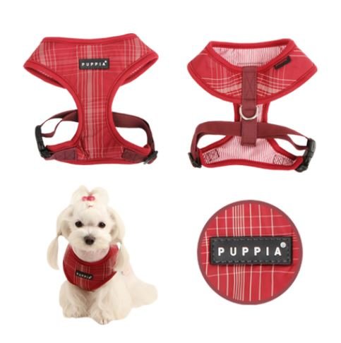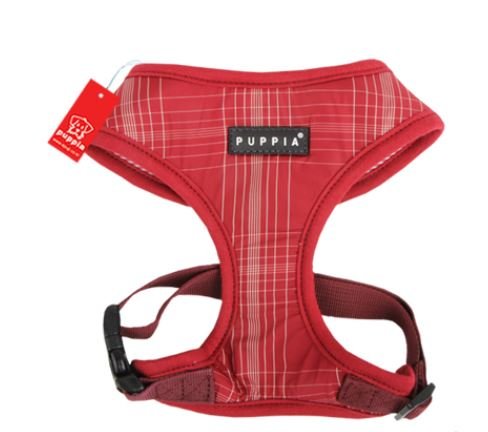 Studio : Puppia Int'l Inc. Publisher : Puppia Int'l Inc. Binding : Misc. Product Description The Cyberspace Harness A (over-the-head) by Puppia features a checkered pattern and solid scheme. Along with a Puppia rubber label, this harness is adjustable on the chest. A matching leash is also available and sold separately (design# PANA-AL129). The shell is made of 90% Nylon/10% Polyester, while the lining is 65% Polyester/35% Cotton. It is available in Wine, Navy and Black in sizes ranging from Small to Extra-Large. Please note that because these products were created with small/medium dog breeds in mind, larger sizes (i.e. Large, Extra-Large, etc.) do not necessarily mean larger breeds. Please refer to image of the size chart. It is very important to measure your dog with a tape measure according to the size chart. As a general rule of thumb, if your dog falls in between sizes, it is usually better to go up a size. Weight figures are for estimates only. Always use actual measurements. Please note that when measuring your dog for clothing, it's very important to have an accurate measurement of your dog's neck and chest girth. IMPORTANT: Please note that when measuring your dog, the measurement for the neck must be taken at the BASE OF THE NECK and chest girth must be taken behind the front legs. Also it is important to take into account the size of the dog's head as well as neck girth and chest girth. Since some dogs have a much larger head than their neck, please be sure that the neck opening is large enough to slide over your dog's head. 0