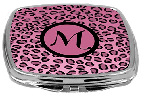 Rikki Knight Compact Mirror, Letter m Initial Light Pink Leopard Print
