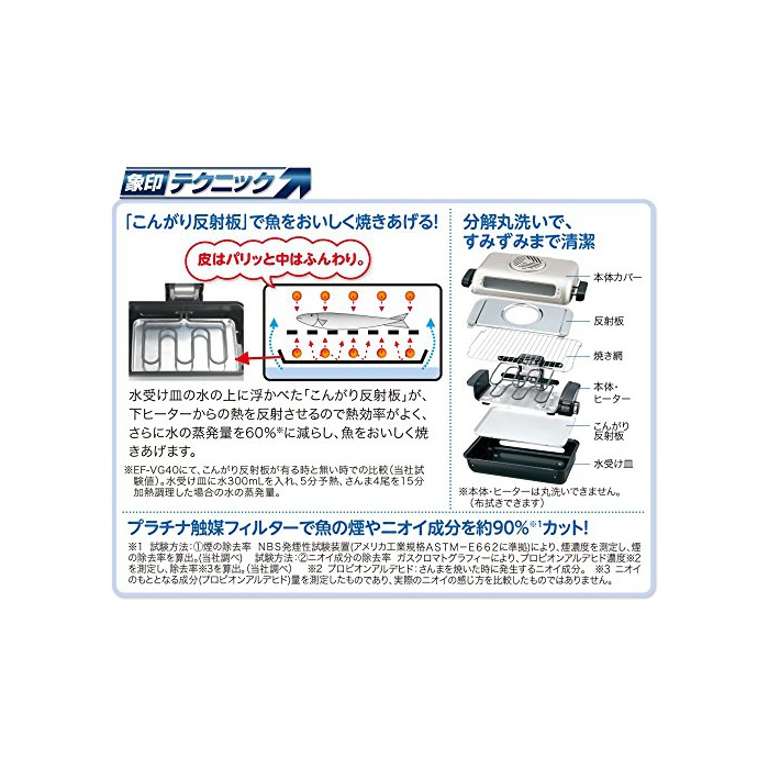 ZOJIRUSHI 조지루시 상도장 피쉬 roaster 양면 구이 분해세 있다&플라티나(platina) 촉매 필터 EF-VG40-SA