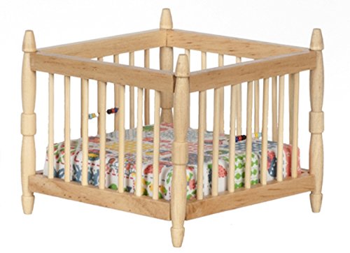 Dollhouse Baby's Light Oak Playpen Miniature 1:12 Scale Nursery Furniture